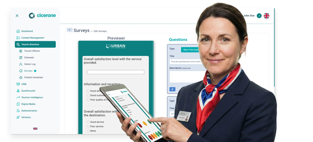 It is a tool that allows to capture data and opinions of visitors from web, screens or tablets, centralizing everything in Cicerone’s CRM.
