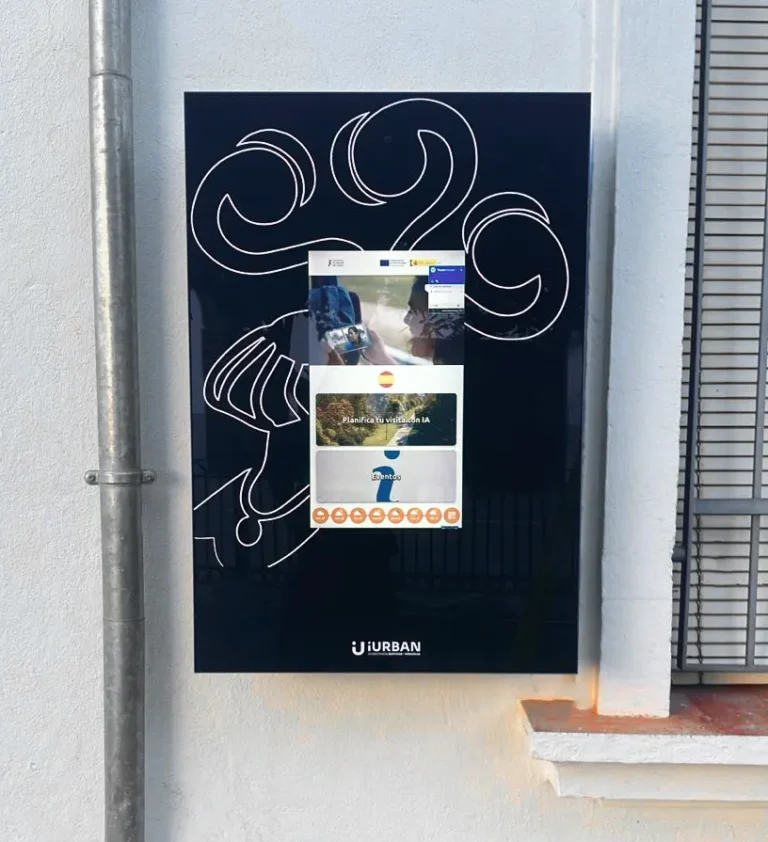 Es una Pantalla interactiva para exteriores que ofrece información turística en tiempo real sin obras.